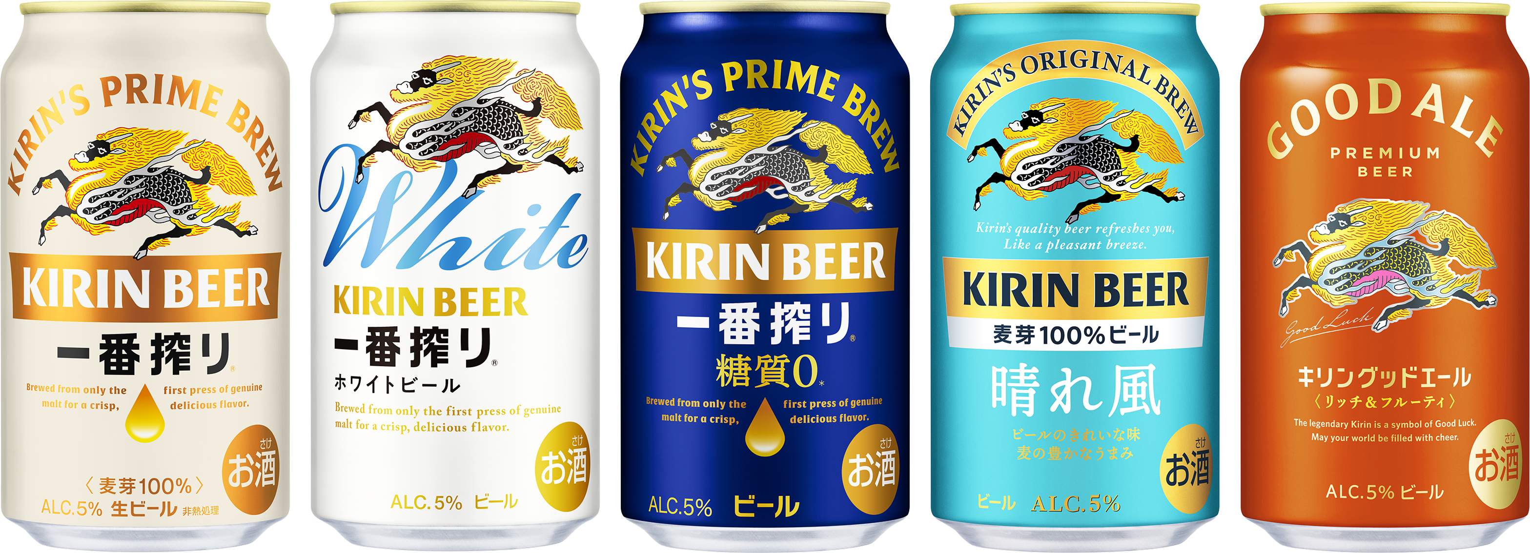 一番搾り/一番搾り ホワイトビール/一番搾り 糖質ゼロ/キリン 晴れ風/キリングッドエール 各350ml・500ml