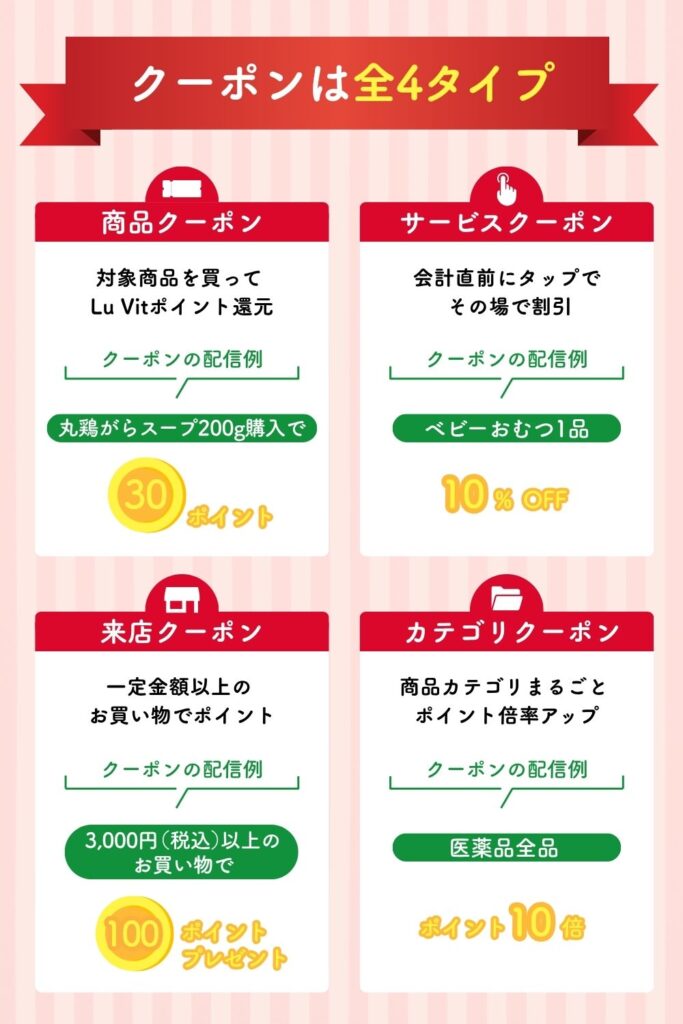 1.Lu Vitアプリのクーポンとは?4つの種類と特徴を紹介