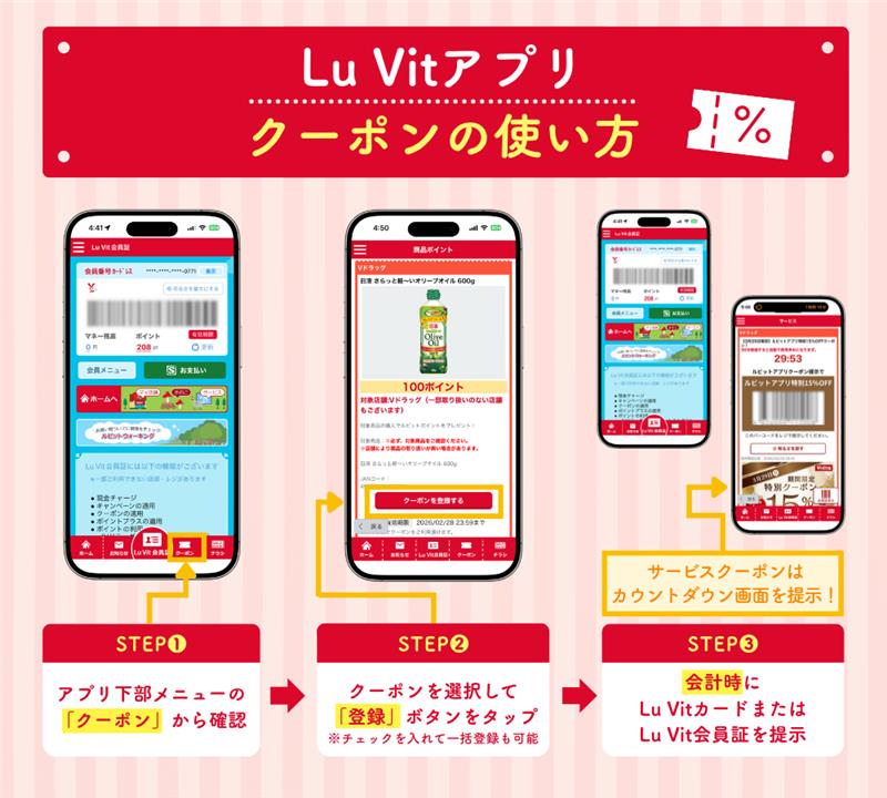2.クーポンの使い方|・Lu Vitアプリでの確認から利用までの流れ