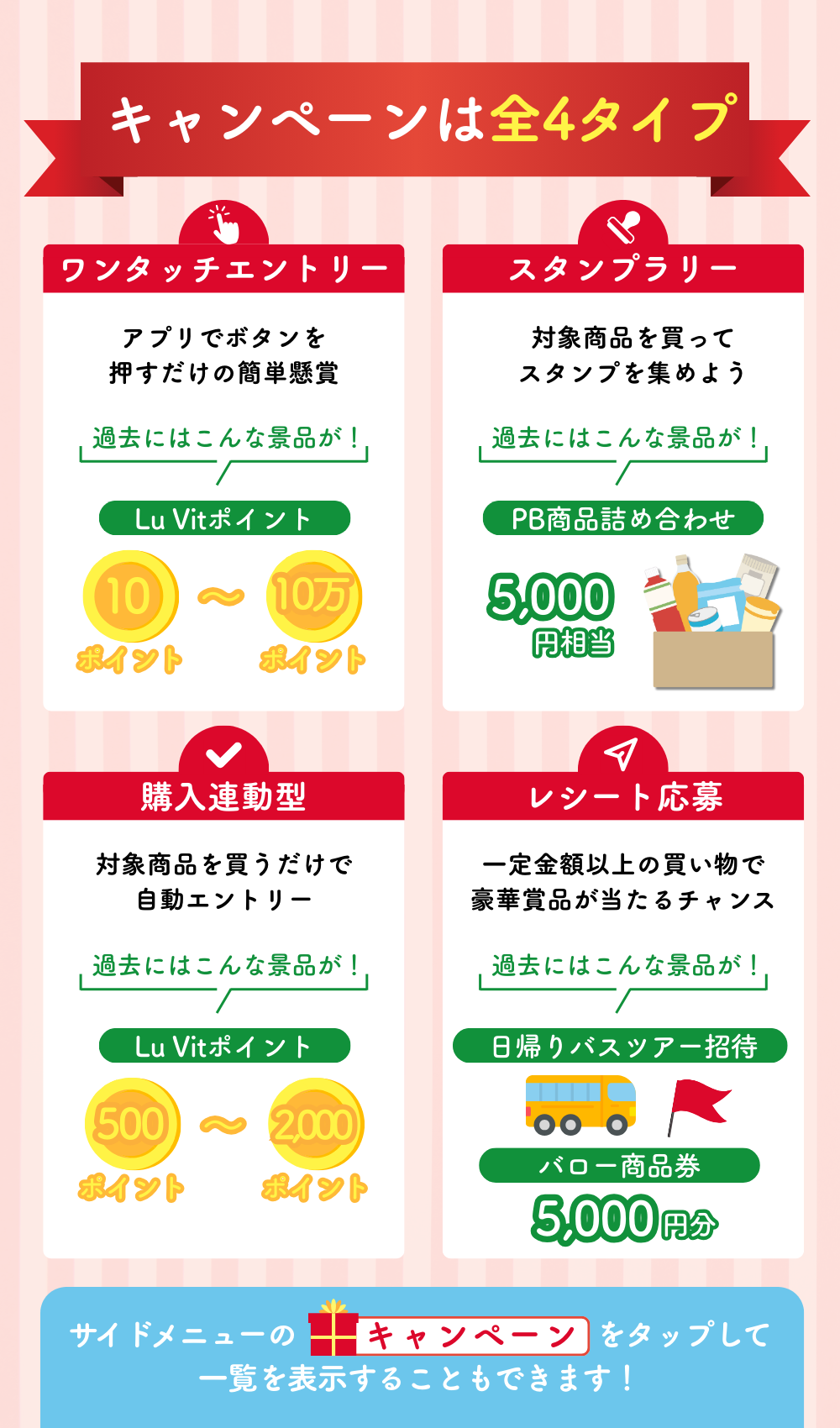 開催中のキャンペーンはLu-Vitアプリで一括チェック! Published on 2026年1月30日 in バローグループのキャンペーン情報はどこで確認?懸賞・特典がもらえる4つの参加方法Full resolution (1000 × 1700) ← Previous Next →